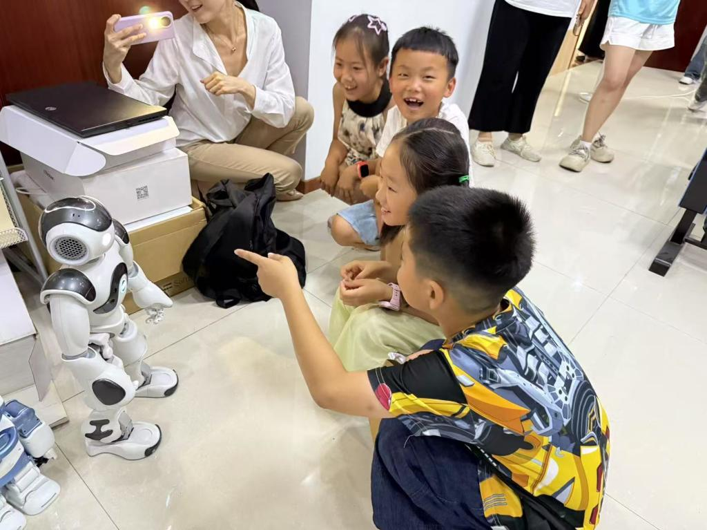 小朋友们体验智能机器人的功能